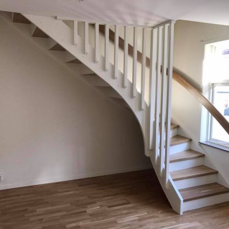 Vi har tillverkat trappor i över 50 års tid. Målade och lackade, för hemmet och för båten, raka och spiraler, inomhus och utomhus – snart finns nog inte en trapptyp som vi inte redan bemästrat med vårt trappsnickeri. Samtidigt är mångsidigheten precis det vi älskar. När uppdraget kräver snickarglädje och finess från vår sida är då vi trivs som bäst.
